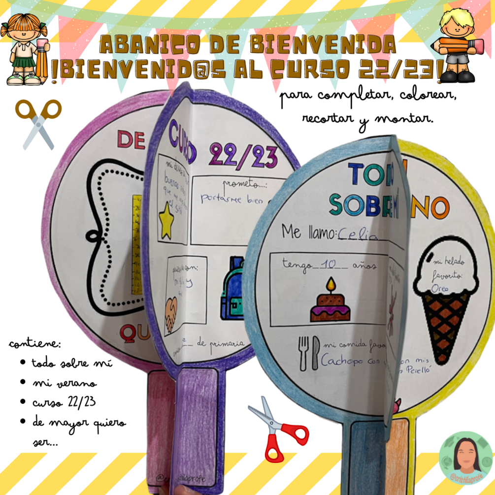 🔎ᗩᗷᗩᑎIᑕO ᗪE ᗷIEᑎᐯEᑎIᗪᗩ ᑭᗩᖇᗩ Eᒪ ᗩᒪᑌᗰᑎᗩᑎᗪO ᗪE EᗪᑌᑕᗩᑕIÓᑎ ᑭᖇIᗰᗩᖇIᗩ🔎 ¡Buenísimas tardes #claustrodeigprimaria! En el día de hoy vengo a compartiros este material para iniciar el curso de una manera bonita, divertida y activa. 🟢El material es un abanico con elaborado con cuatro lupas para completar. La idea es que el alumnado comience el curso de presentándose a través de estas lupas. El abanico está formado por cuatro lupas, a saber: 1- TODO SOBRE MÍ. Donde el alumnado podrá escribir su nombre, edad, color, comida y lugar favorito. La idea es que, en esta primera cara, el alumnado se presente de manera más personal. 2- MI VERANO. Donde podrán contarnos cuál es su sabor de helado favorito, su mejor momento del verano y dónde han estado estas vacaciones. La idea es que podamos revivir sus vacaciones y que sientan que queremos conocerl@s y saber de ellos/as. 3- DE MAYOR QUIERO SER... En esta lupa el alumnado podrá realizar un dibujo y escribir qué quiere ser de mayor. La idea es poder conocer un poquito más sus intereses y los mundos por los que les gustaría vivir en un futuro (porque aunque estas ideas puedan variar a lo largo del tiempo, los sueños y las ilusiones de los niños, como decía Calderón de la Barca, "sueños son"). 4- CURSO 22/23. Donde el alumnado podrá pedir un deseo para el nuevo curso, hacer una promesa y contarnos con quién estará en este curso que empieza (que también indicará qué curso hace... ¿1º, 2º o 6º?) 🟢La idea es crear una especie de "pacto" con el alumnado a través de esta lupa y comenzar el curso con ilusión y con metas.