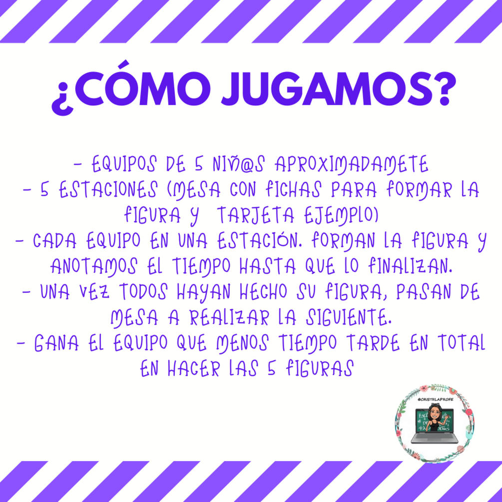 En la tarde de hoy, tras llegar a los 18500🤞🏼🤞🏼🤞🏼, me apetecía traeros este material que creo que os gustará. Todo el mundo conoce los #bloqueslógicosdedienes (sobre todo en E.I). Con ellos podemos hacer gran cantidad de cosas muy divertidas. Yo planteo un juego con unas tarjetas tipo (ver a la izquierda de la imagen). 🌈 FORMAMOS GRUPOS DE 5 NIÑ@S APROX 🌈 PONEMOS 5 ESTACIONES (MESAS) DISTRIBUIDAS POR EL AULA Y CSDS EQUIPO SE COLOCA EN CADA MESA 🌈 EN CADA MESA PONEMOS UNA TARJETA Y UN JUEGO DE FICHAS PARA CONFORMAR LA FIGURA 🌈 COMIENZA EL TIEMPO ⏱ Y LOS NIÑOS 🧒 COMIENZAN , EN EQUIPO, A CREAR ESA FIGURA (Anotamos el tiempo que tarda cada equipo) 🌈 UNA VEZ QUE TODOS HAYAN ACABADO, PASAMOS A LA SIGUIENTE ESTACIÓN Y ASÍ, SUCESIVAMENTE. 🔱 GANADORES: EL EQUIPO WUE EN TOTAL CONSIGA HACER LAS 5 FIGURAS EN MENOS TIEMPO 🔱 ¿Qué incluye este pack? ❌ FICHAS PARA IMPRIMIR ❌ 10 TARJETAS PARA FORMAR FIGURAS CON LAS FICHAS (ya que en muchas clases, sí podéis usar los bloques lógicos si disponéis de ellos, pero en cursos altos no suele haber).